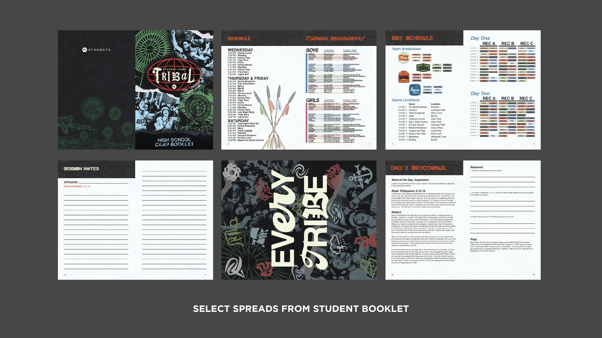 Tribal Camp was a visual identity to help Family Church Students break away from the routine, and enjoy time with friends, fun games, and learn about the love of Jesus.